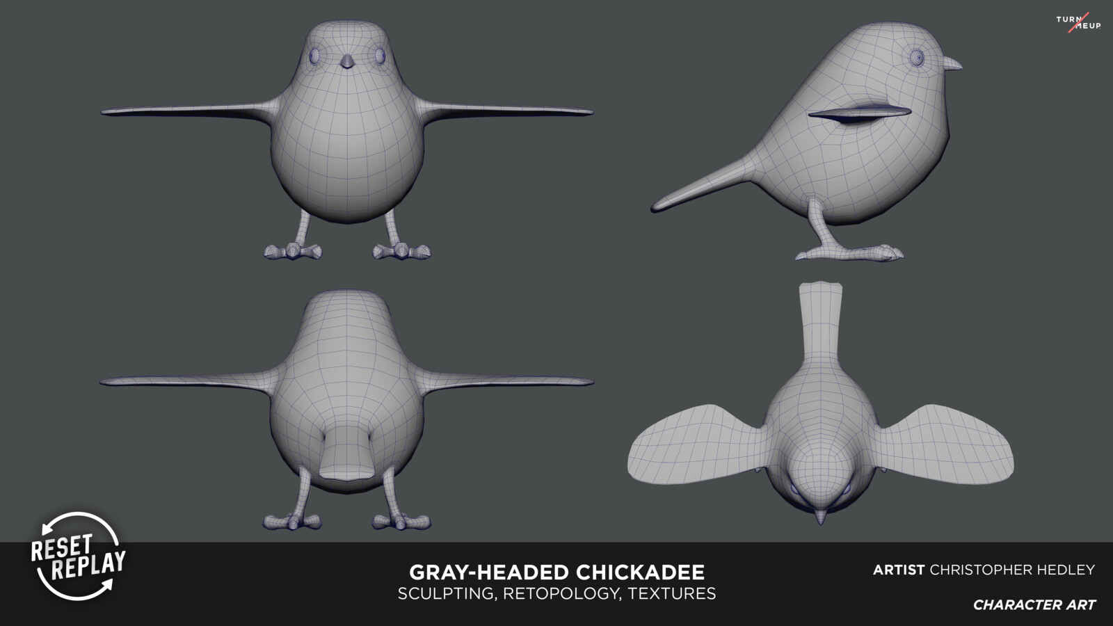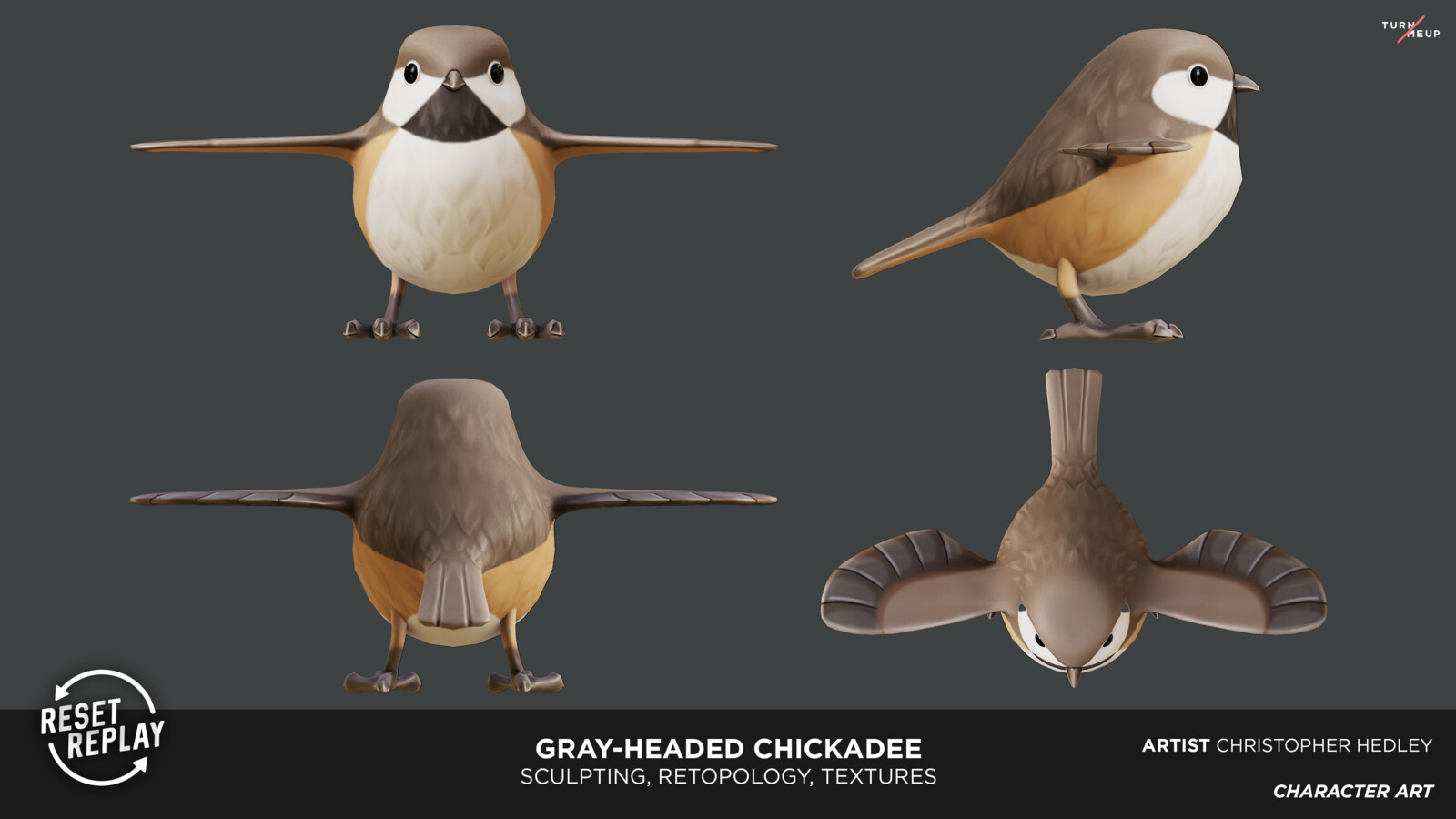 Sculpted with Zbrush, Retopologized and UV unwrapped with Maya, Textured with Substance Painter