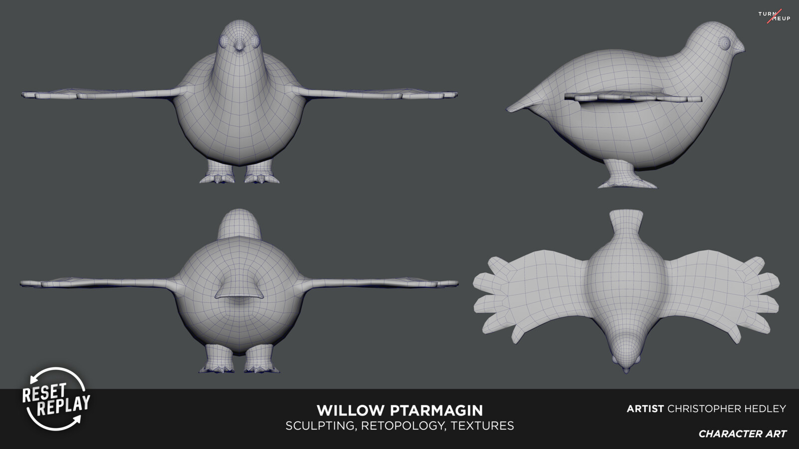 Sculpted with Zbrush, Retopologized and UV unwrapped with Maya, Textured with Substance Painter
